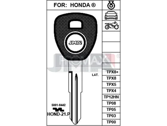 מפתח הונדה רגיל JMA TP00HOND-21.P