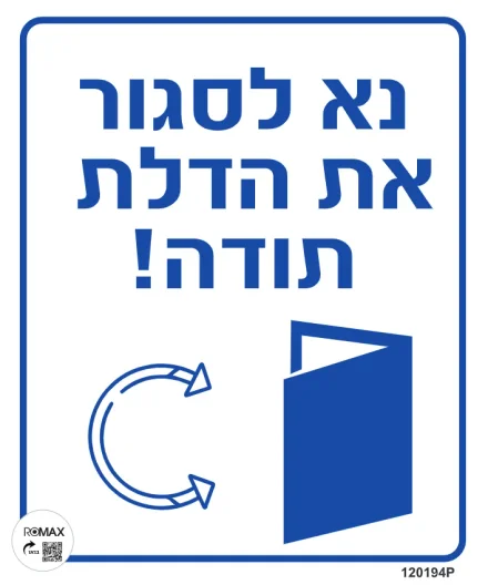 שלט נא לסגור את הדלת תודה גודל 30x30 מספר 194