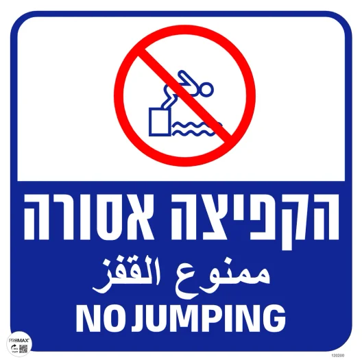 שלט לבריכה אסור לקפוץ כיתוב עברית ערבית אנגלית גודל 40x40 מספר 200