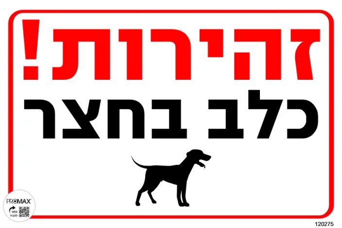 שלט זהירות כלב בחצר 30X20 מספר 275