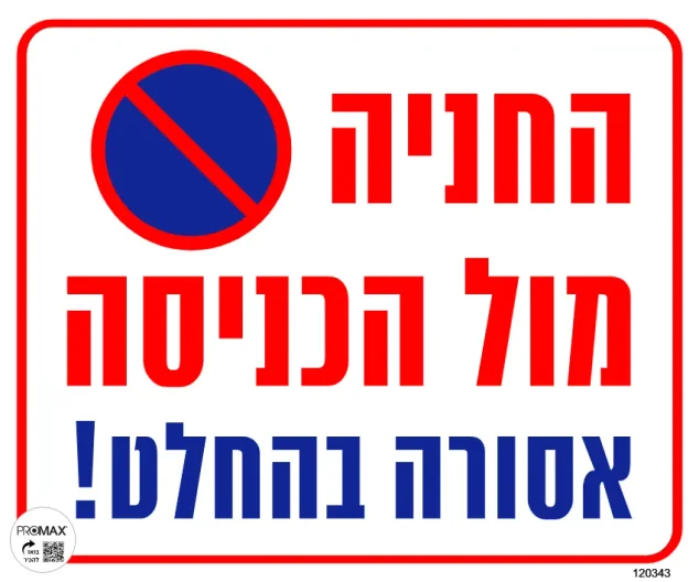 שלט החנייה מול הכניסה אסורה בהחלט 30X30 מספר 344