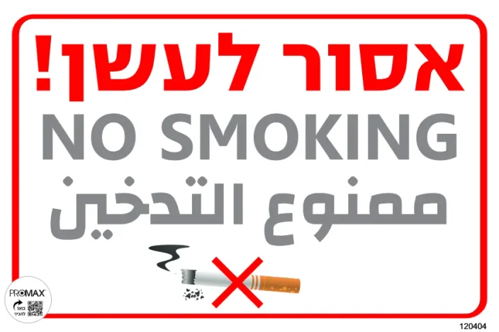 שלט צבעוני אסור לעשן 20x30 מספר 404D
