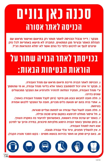שלט סכנה כאן בונים + הוראות בטיחות גודל 40X60 מספר 793